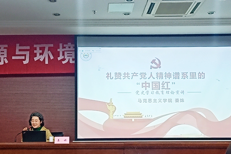 宣讲团成员、马克思主义学院姜姝副教授为资环师生作题为《礼赞共产党人精神谱系里的“中国红”》的党史学习教育宣讲报告。电子竞技