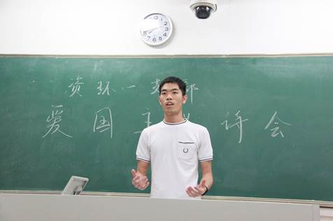 在所有的朗诵者中有几位同学具有代表性。其中柴以潇同学独树一帜,准备了一首古诗《过零丁洋》,他在朗诵时声音响亮,慷慨激昂,很好的调动了听众的情绪。他通过先人的事例来提醒现代大学生虽身处和平安逸的年代,没有外来条件的影响,但我们不应忘记这是祖国赋予我们的美好条件,我们应当努力奉献自我,报效祖国。