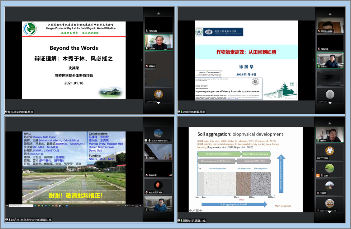 学科(方向)带头人沈其荣教授、徐国华教授、赵方杰教授、潘根兴教授、邹建文教授、高彦征教授、周立祥教授、刘满强教授介绍了近年来课题组取得的重要成果 ;李荣教授、刘树伟教授、韦中教授、于振中教授4名青年学术骨干交流了前沿进展;电子竞技