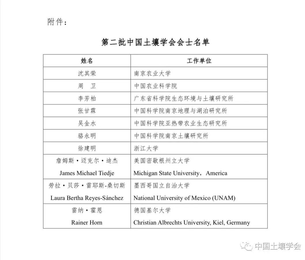 中国土壤学会于2021年建立了会士制度,学会今年进行了“第二批中国土壤学会会士”的提名工作,《中国土壤学会会士章程》第十二条规定“土壤科学领域的两院院士经本人同意可直接成为中国土壤学会会士”。