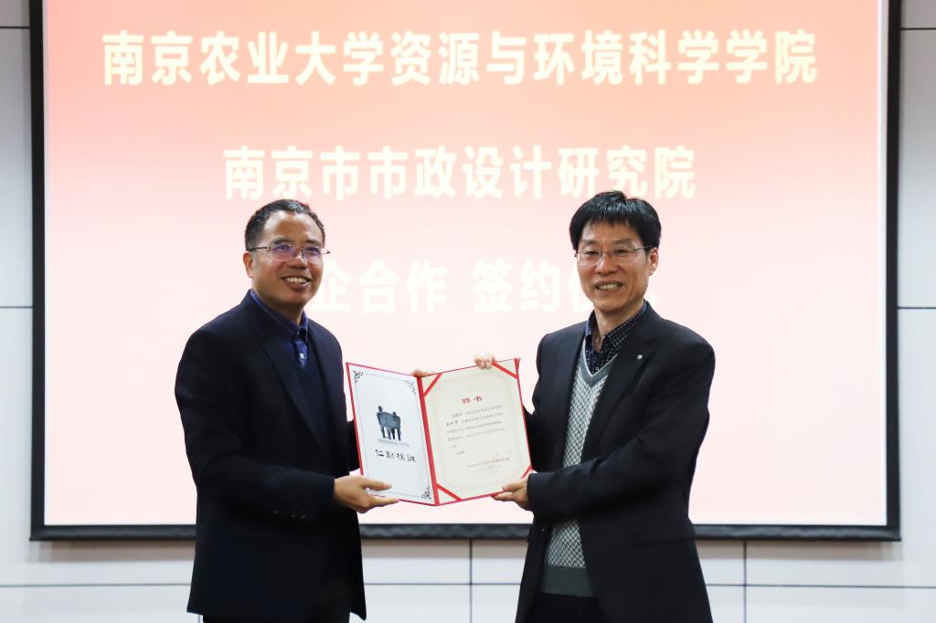 与南京市政院校企合作签约暨实践教学基地揭牌仪式在资环楼举行。学院党委书记全思懋、南京市政院党委书记 总经理夏文林、副总经理兼总工程师王阿华、总经理助理兼产品研究院院长孔宇、设计四院副院长任云、设计四院副总工程师黄敏,学院副院长张旭辉、环境学科负责人周立祥教授等出席仪式,环境工程系主要教师参加仪式,仪式由环境工程系系主任郑冠宇教授主持。