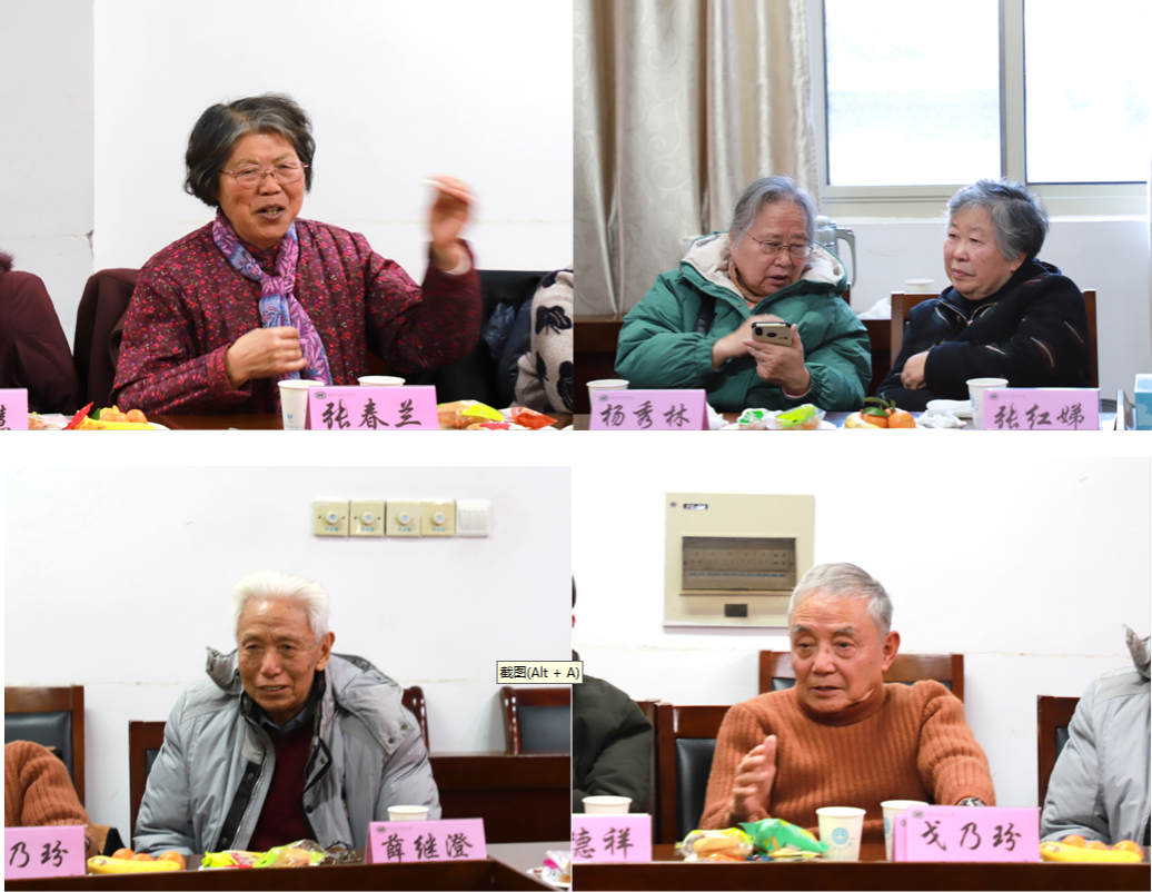 退休教师座谈会在资环楼B211举行。院长张瑞福、党委副书记闫相伟、王敏、郭辉,与退休教师代表齐聚一堂,同叙情谊,共话新春。
