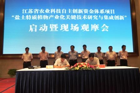 2012年8月16日,江苏省农业自主创新资金体系项目“盐土特质植物产业化关键技术研究与集成创新”启动会在大丰隆重召开。中央候补委员、中国农业科学院原院长翟虎渠教授,江苏农业科学院院长严少华研究员,电子竞技