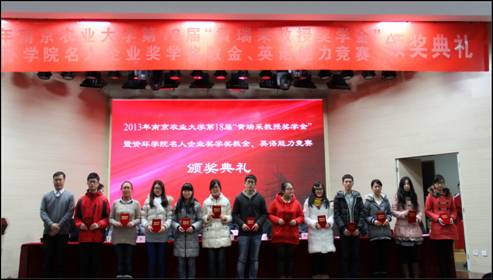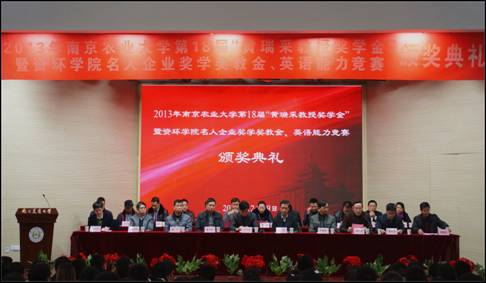 名人企业奖学奖教金、英语能力竞赛颁奖典礼在大学生活动中心隆重举行。江苏省农科院院长、黄瑞采教授基金理事长严少华,中科院南京土壤研究所书记蔡立,江苏省农委副主任戴志新,环境保护部南京环境科学研究所副所长李德波,黄瑞采先生家代表属黄克明,电子竞技