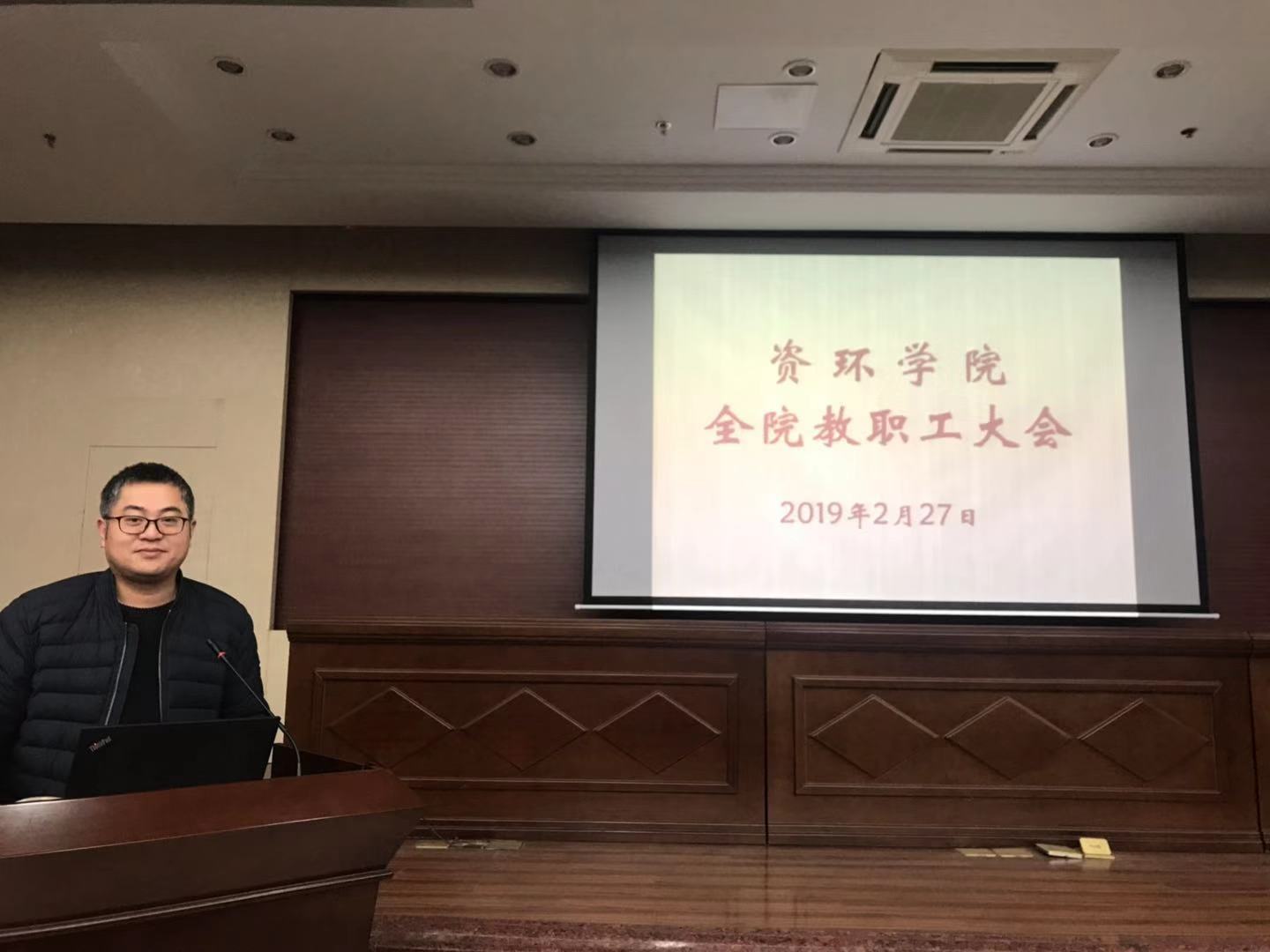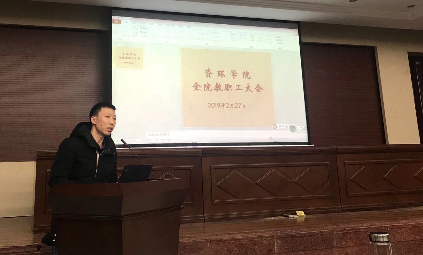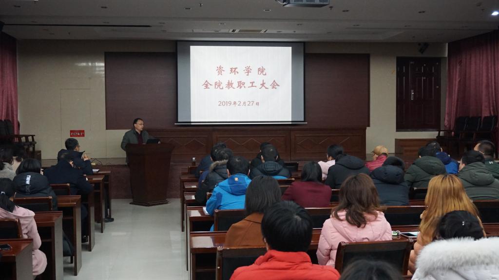 十一届十五次全委(扩大)会议主要精神。他做题为“确立两个意识,把牢两种思维,进一步形成聚焦一流、同创一流的资环合力”专题报告。全思懋要求大家树立一流意识,瞄准一流目标,作出一流努力,确保一流的学院声誉实至名归。他强调一流意识和忧患意识是学院发展理念的一体两面;底线思维和共生思维是学院发展要求的一体两翼;诚信、包容、竞争、共生是学院的团队文化。