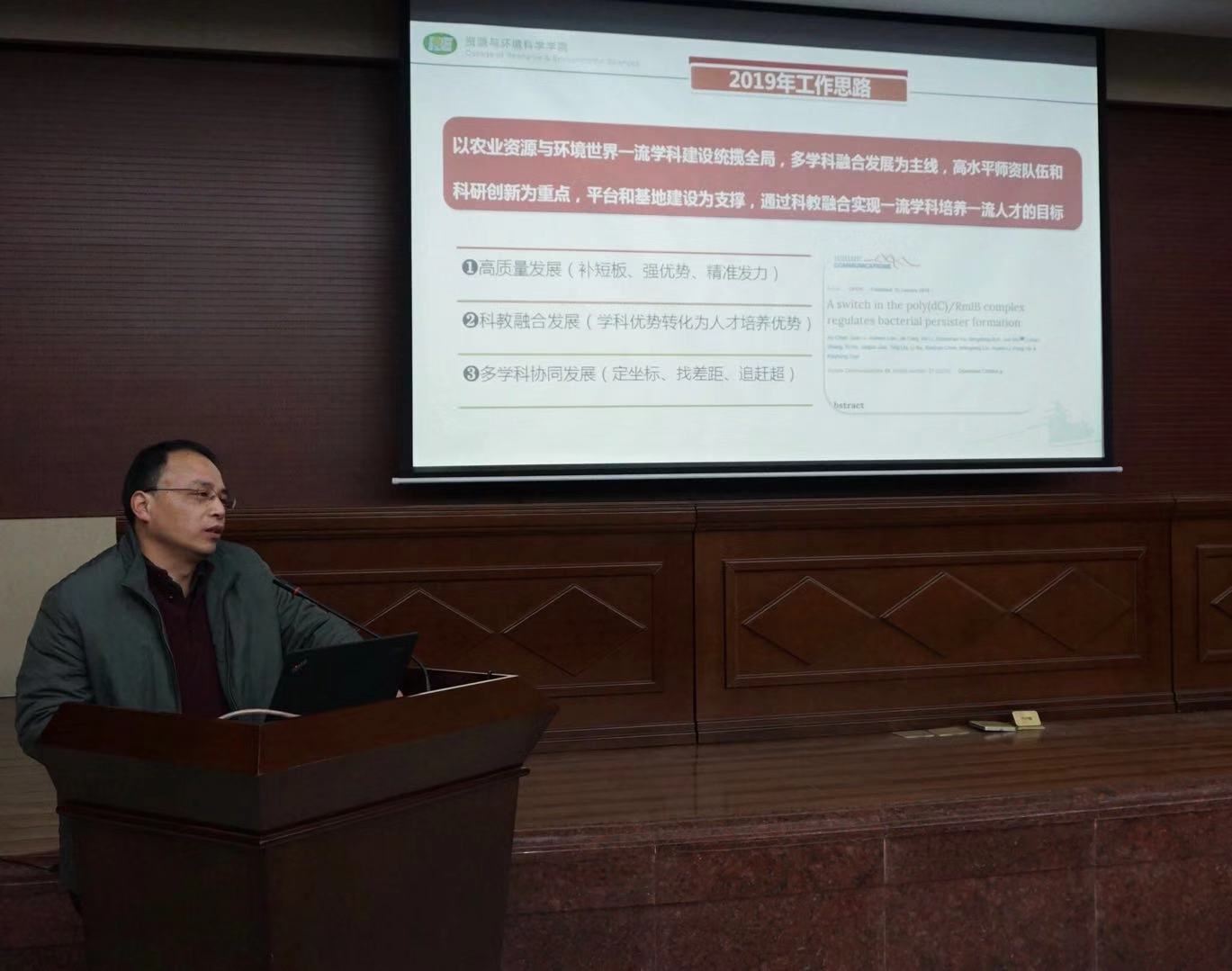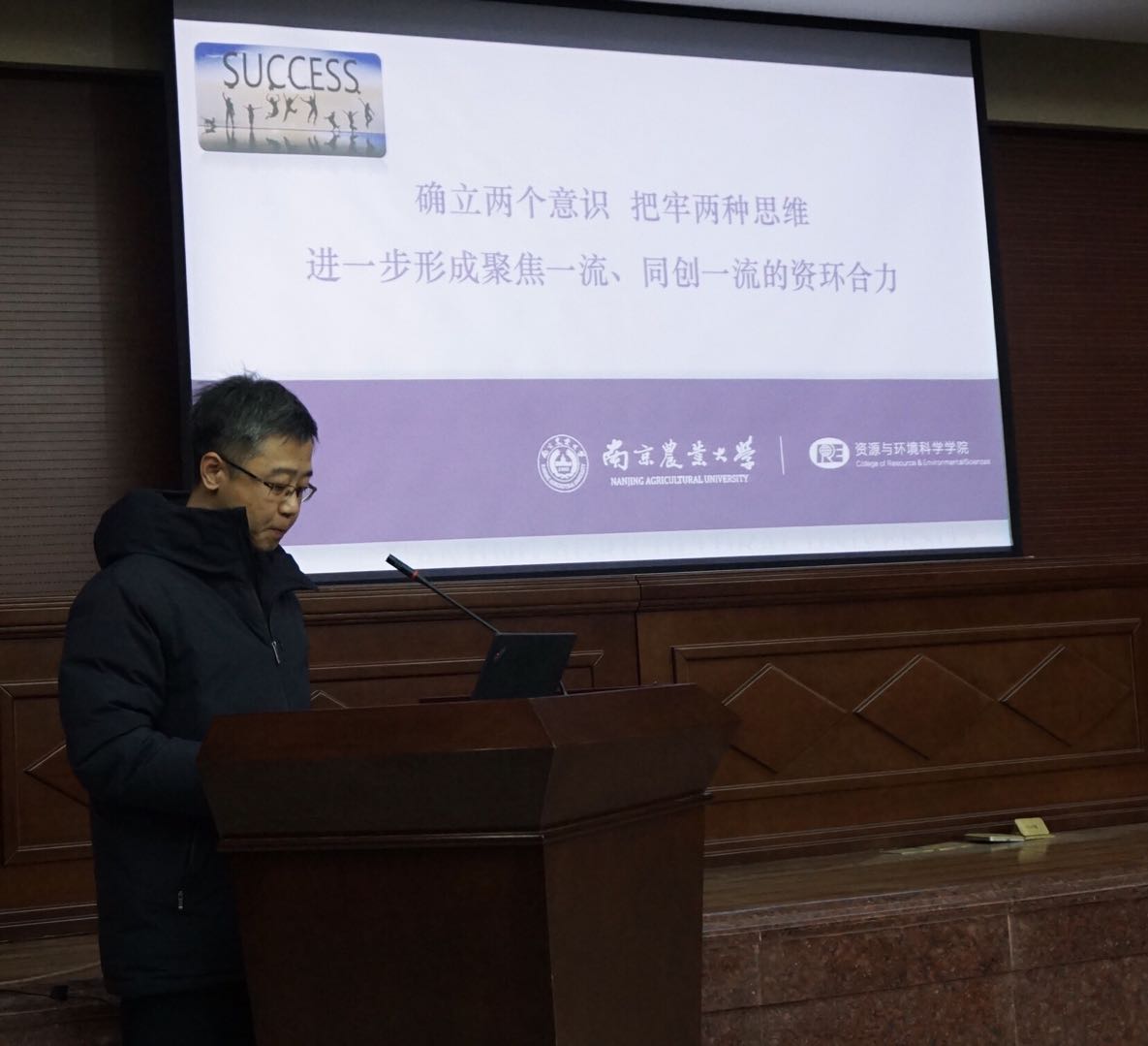世界一流学科建设统揽全局,多学科融合发展为主线,高水平师资队伍和科研创新为重点,平台和基地建设为支撑,通过科教融合实现一流学科培养一流人才的目标”的工作思路。他梳理了学院新学期的十项重点工作,强调传承诚朴勤仁的南农品格,弘扬开拓创新的资环精神。