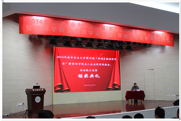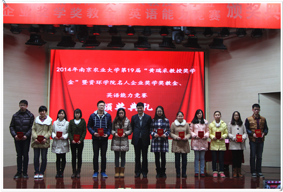 名人企业奖学金教金、英语能力竞赛颁奖典礼于大学生活动中心举行。江苏省农科院书记,黄瑞采教授奖学金基金理事长严少华,中科院南京土壤研究所书记蔡立,黄瑞采先生的家属代表黄克明,电子竞技