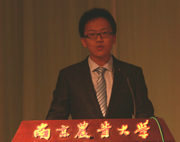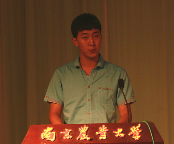 典礼中,研究生老生代表靳泽文与新生们分享了自己研究生生活心得。研究生新生代表庞炳坤表达了新生对研究生学习的憧憬和决心。