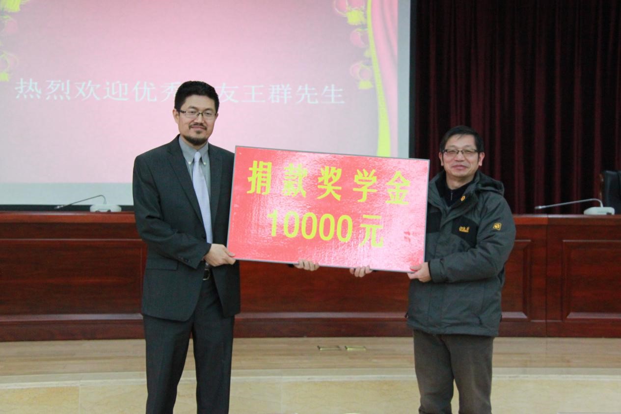 捐赠奖学金10000元,并结合自身经历做了报告。王群先生与大家分享了他在加拿大的经历并对电子竞技