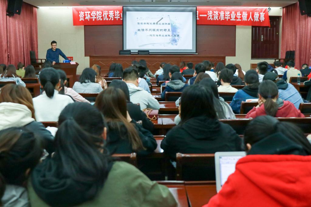 优秀校友报告会于资环楼报告厅举行,此次报告会邀请南京浩川农业科技有限公司总经理陈旭前来分享关于准毕业生做人做事之感悟,电子竞技