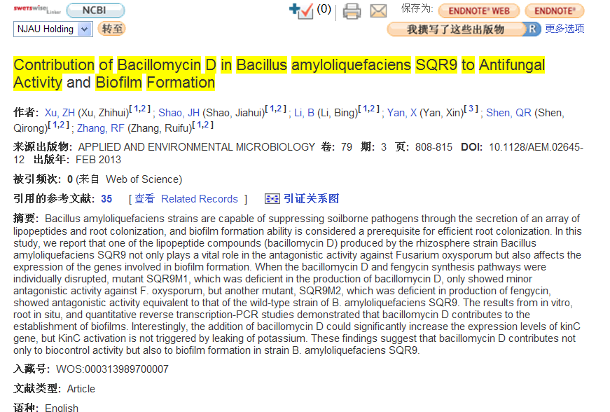 下一篇:Contribution of Bacillomycin D in Bacillus amyloliquefaciens SQR9 to Antifungal Activity and Biofilm Formation