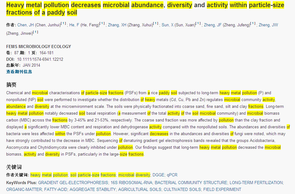 上一篇:Heavy metal pollution decreases microbial abundance, diversity and activity within particle-size fractions of a paddy soil