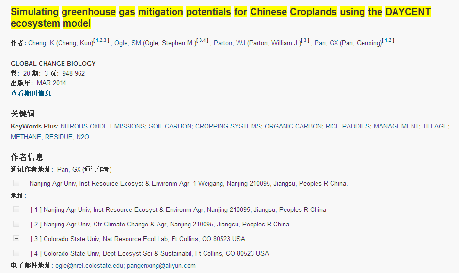 Simulating greenhouse gas mitigation potentials for Chinese Croplands using the DAYCENT ecosystem model