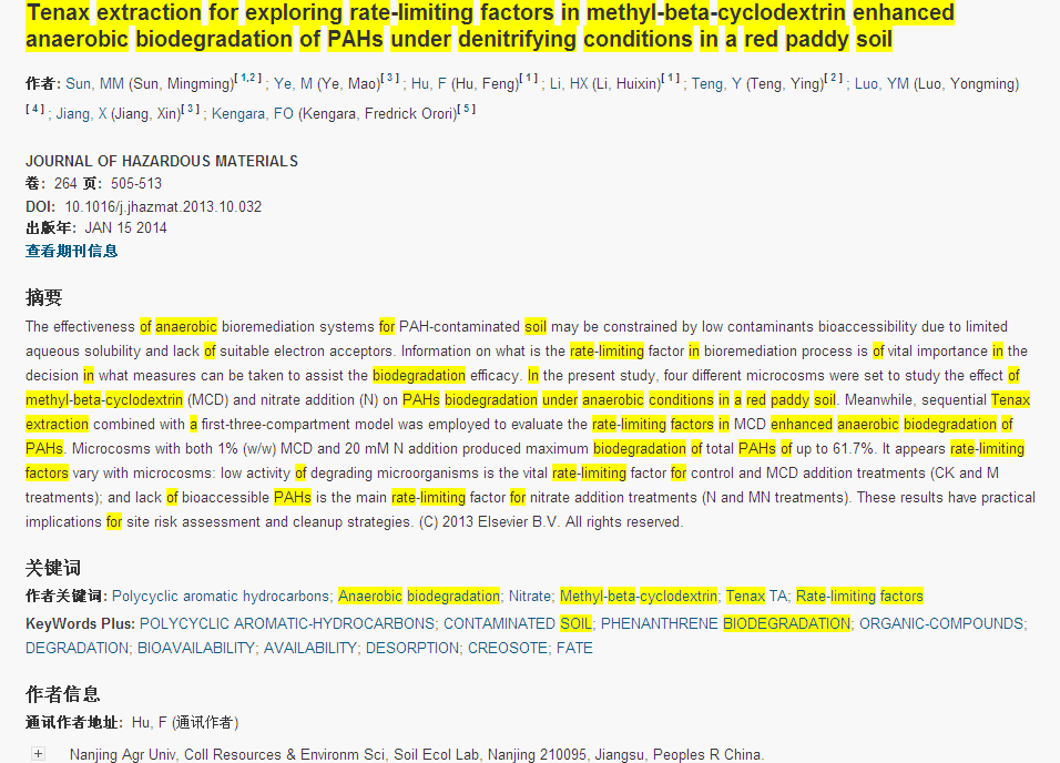 上一篇:Tenax extraction for exploring rate-limiting factors in methyl-beta-cyclodextrin enhanced anaerobic biodegradation of PAHs under denitrifying conditions in a red paddy soil