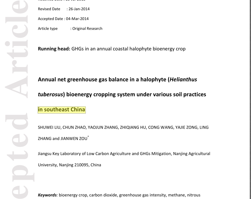 下一篇:Annual net greenhouse gas balance in a halophyte (Helianthustuberosus) bioenergy cropping system under various soil practices in southeast China