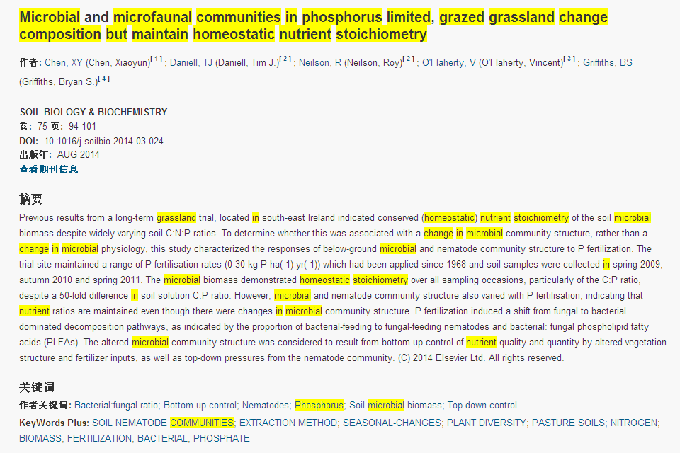 上一篇:Microbial and microfaunal communities in phosphorus limited, grazed grassland change composition but maintain homeostatic nutrient stoichiometry