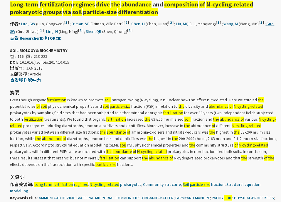 上一篇:Contrasting effects of inorganic and organic fertilisation regimes on shifts in Fe redox bacterial communities in red soils