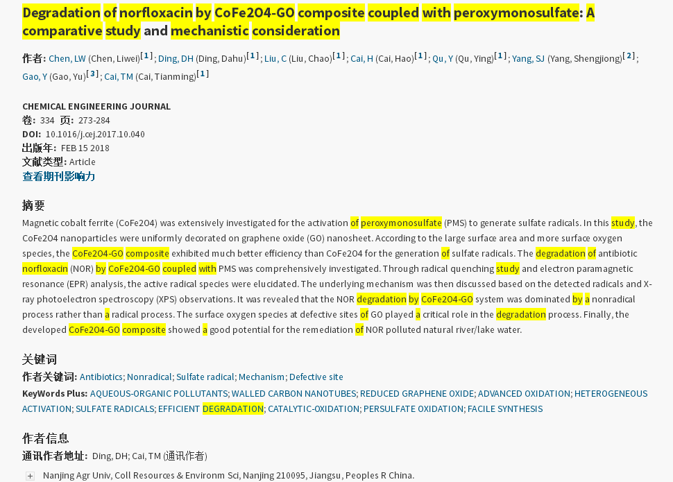 上一篇:Changes in tetracycline partitioning and bacteria/phage-comediated ARGs in microplastic-contaminated greenhouse soil facilitated by sophorolipid