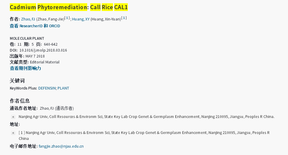 上一篇:Decreasing arsenic accumulation in rice by overexpressing OsNIP1;1 and OsNIP3;3 through disrupting arsenite radial transport in roots