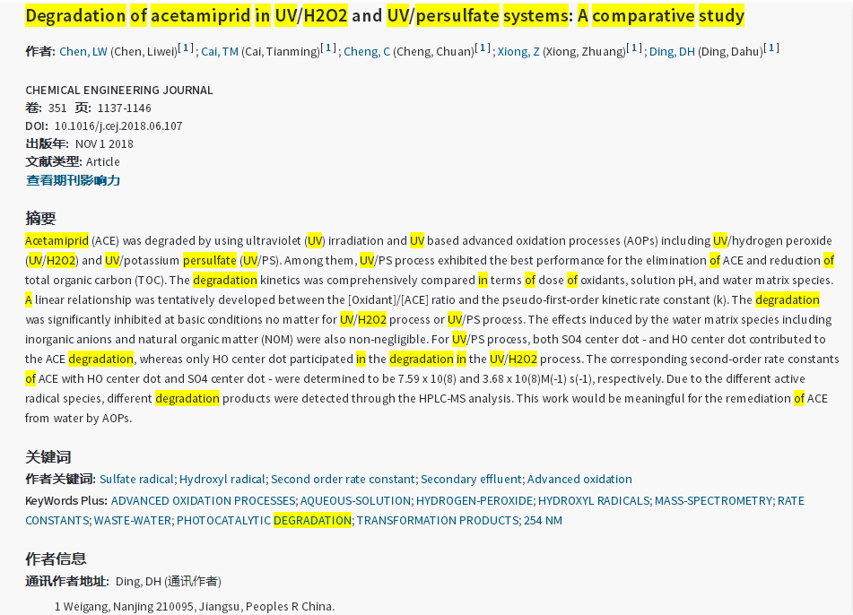 上一篇:Efficient heterogeneous activation of peroxymonosulfate by facilely prepared Co/Fe bimetallic oxides: Kinetics and mechanism