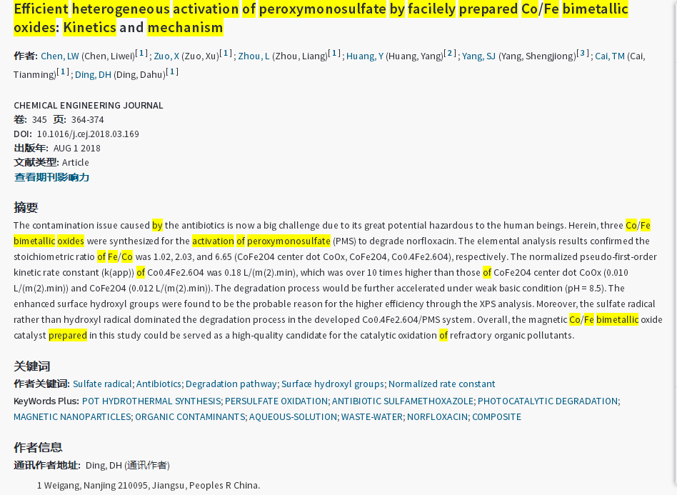 下一篇:Degradation of acetamiprid in UV/H2O2 and UV/persulfate systems: A comparative study