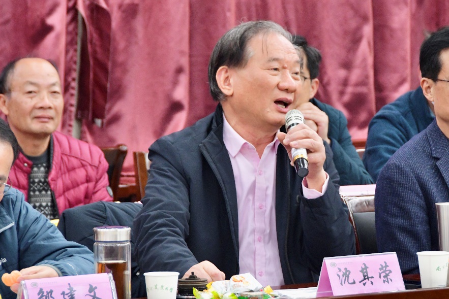 中国工程院院士沈其荣教授、副校长胡锋教授,学院领导班子和退休老教师、在职教职工及学生代表60余人出席座谈。座谈会由院长邹建文主持。