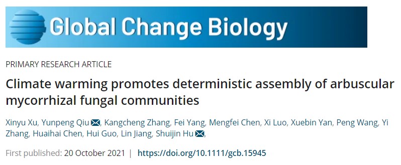 生态系统生态学实验室在全球变化领域顶级期刊《Global Change Biology》上发表了题为“Climate warming promotes deterministic assembly of arbuscular mycorrhizal fungal communities”的研究论文。该研究依托于甘肃甘南草原生态系统国家野外科学观测研究站中的高寒草甸全球变化实验,在AM真菌群落构建对模拟气候变暖和降水改变的响应研究方面取得重要进展。