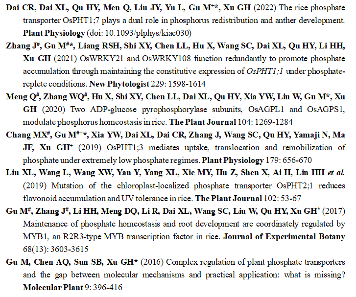 近日,徐国华教授团队在Plant Physiology在线发表了题为 “The Rice Phosphate Transporter OsPHT1;7 Plays a Dual Role in Phosphorus Redistribution and Anther Development” 的研究论文,该研究阐明了水稻磷转运体OsPHT1;7在磷素再分配和花药磷积累中的功能。该团队近年来在作物磷素营养生物学方向的研究取得了一系列进展,研究内容发表在Molecular Plant, New Phytologist, Plant Physiology, The Plant Journal, Journal of Experimental Botany等植物学权威期刊。