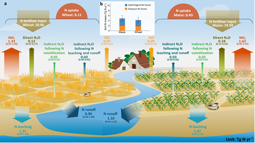 玉米和小麦作为两大旱地粮食作物,支撑着全球近三分之二的粮食需求,生产过程中消耗了全球38%的氮肥,导致大量活性氮(Nr)损失到大气和水体环境中,严重损害生态环境和人类健康。近几十年来,如何在保障全球粮食安全的前提下最大限度减少农田Nr损失一直是人类共同面临的科学难题和前沿热点。如何精确量化农田氮肥施用的Nr损失系数与损失强度,是提高全球和区域尺度土壤Nr损失清单编制科学性的重要基础。